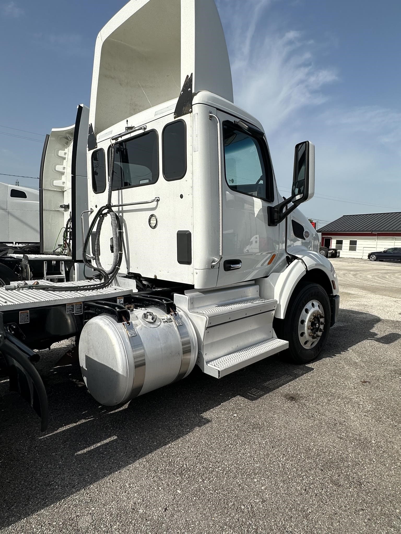 This white day cab offers a perfect blend of power and modern driving comfort.