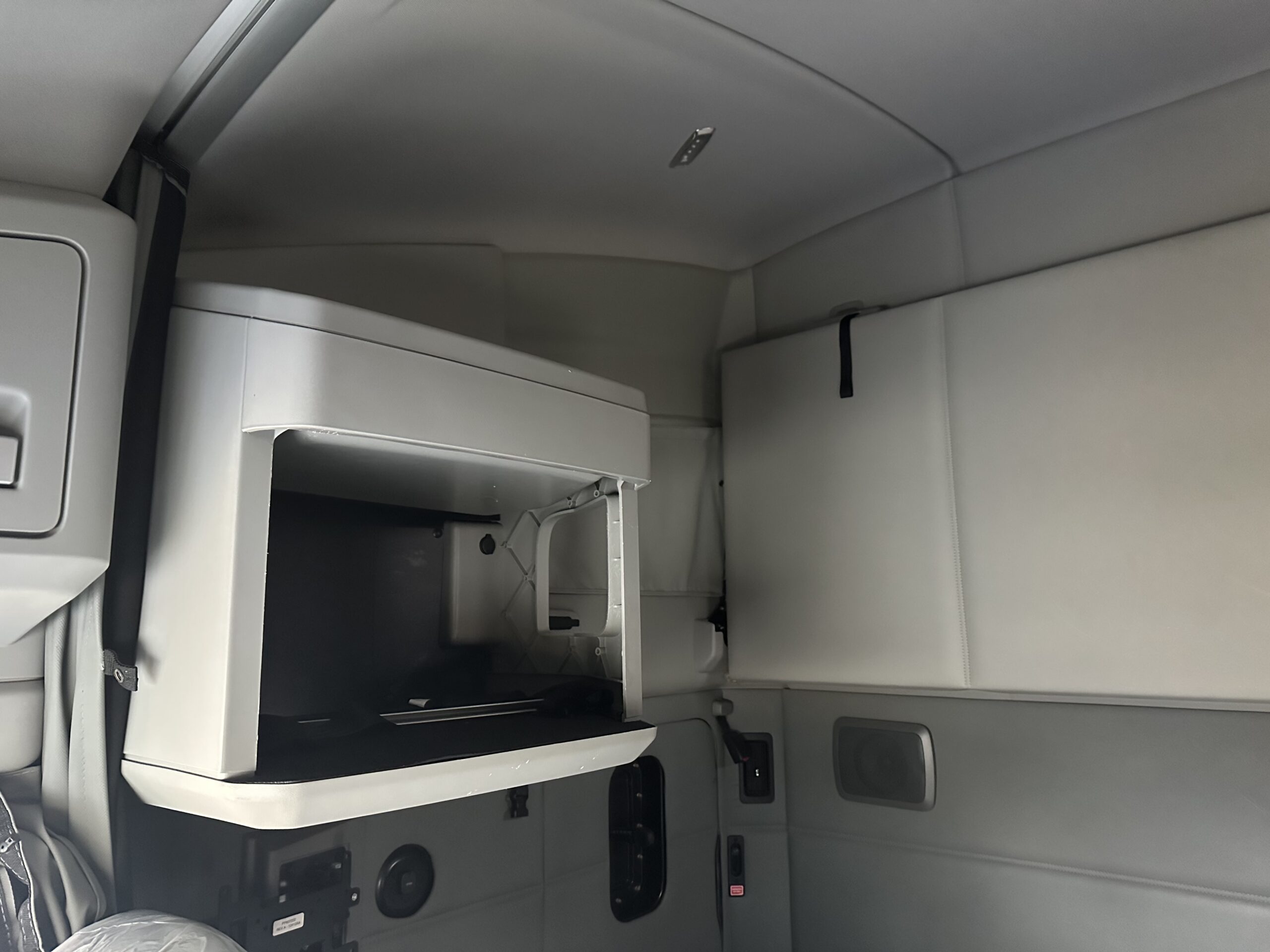 This powerful white sleeper cab offers a perfect blend of power and modern driving comfort for long-distance hauls.