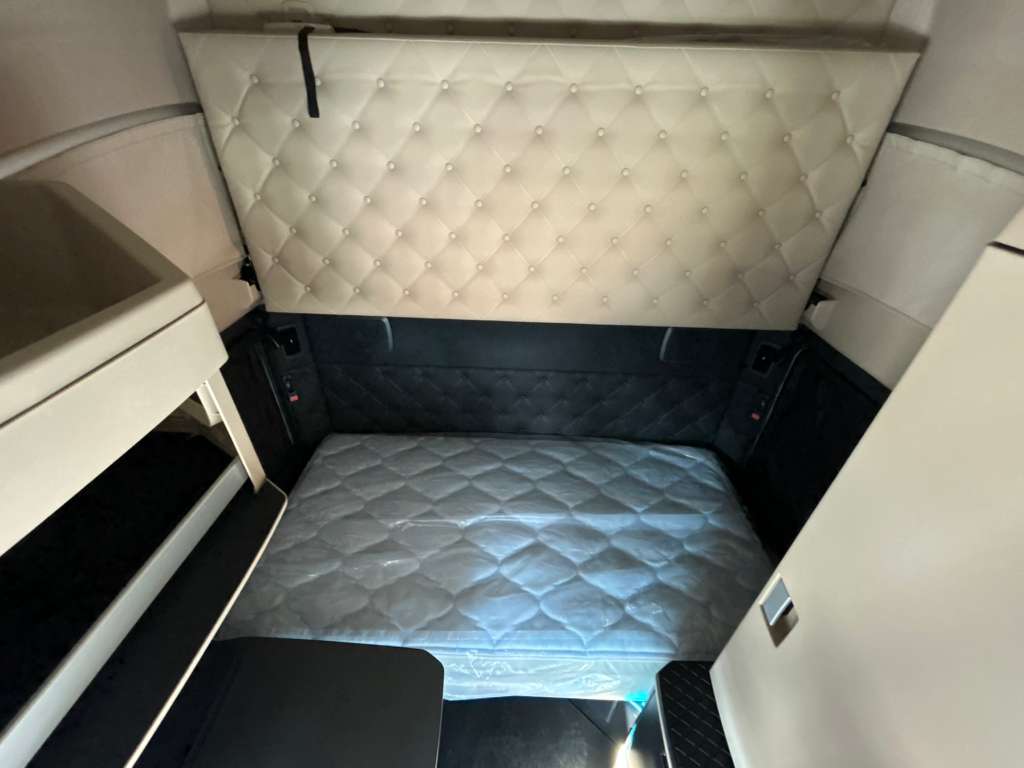 Own the road in this essentially new, exclusive white sleeper cab, designed to deliver a premium blend of high-performance power and modern comfort for every mile of your journey.